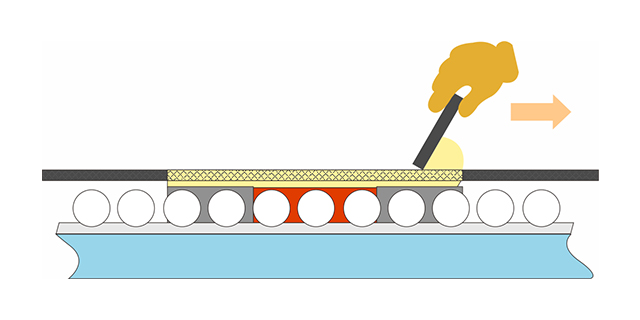 2) Imprimir adhesivo termofusible mediante serigrafía.