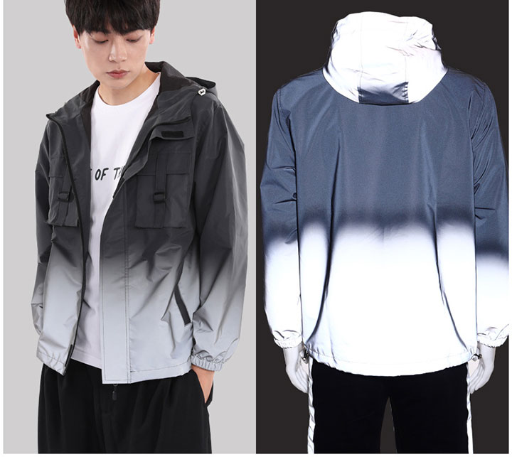 Estos nuevos tejidos reflectantes combinan reflejos plateados y de color. Se ve más hermosa y puede hacer que la chaqueta reflectante tenga un estilo más fresco y moderno, en comparación con nuestra chaqueta suave de color gris. Ahora el ancho máximo es de 140 cm y el coeficiente retrorreflectante es de alrededor de 5 a 10 cpl para la parte coloreada, pero puede alcanzar 330 cpl para el color gris. Entonces, cuando la luz incide sobre él, también puedes ver diferentes efectos reflectantes. Nuestro diseñador sugiere utilizar esta nueva tela reflectante como tela exterior, no solo como tela para coser. De esta forma, el efecto degradado será mejor.