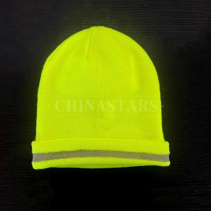 Gorro de invierno de punto acanalado reflectante amarillo de alta visibilidad