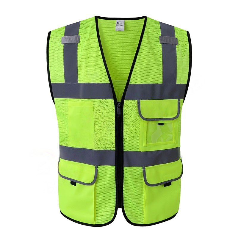 Желтый светоотражающий жилет с многофункциональными карманами.